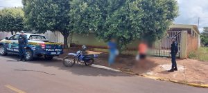 Dois jovens em uma motocicleta, ao avistar a presença policial, fogem e ignoram a ordem de parada emanada pelos policiais. Após fugir por diversas ruas, caem e são abordados pelos militares. O jovem de 18 anos afirmou que fugiu pois não possui CNH. Durante checagem foi constatado que veículo estava com restrição criminal e administrativa, consequentemente a motocicleta foi recolhida, o jovem detido e encaminhado até a delegacia.