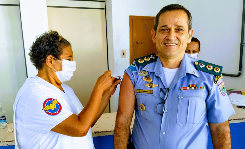 O primeiro a ‘puxar a fila’ foi o Tenente-coronel PM Amaral, comandante do 7º Batalhão de Polícia Militar, recebendo a 1ª dose da manhã. Antes disso, fez uma rápida preleção ao efetivo, falando sobre a importância de trabalhos preventivos voltados a saúde e ao bem-estar.