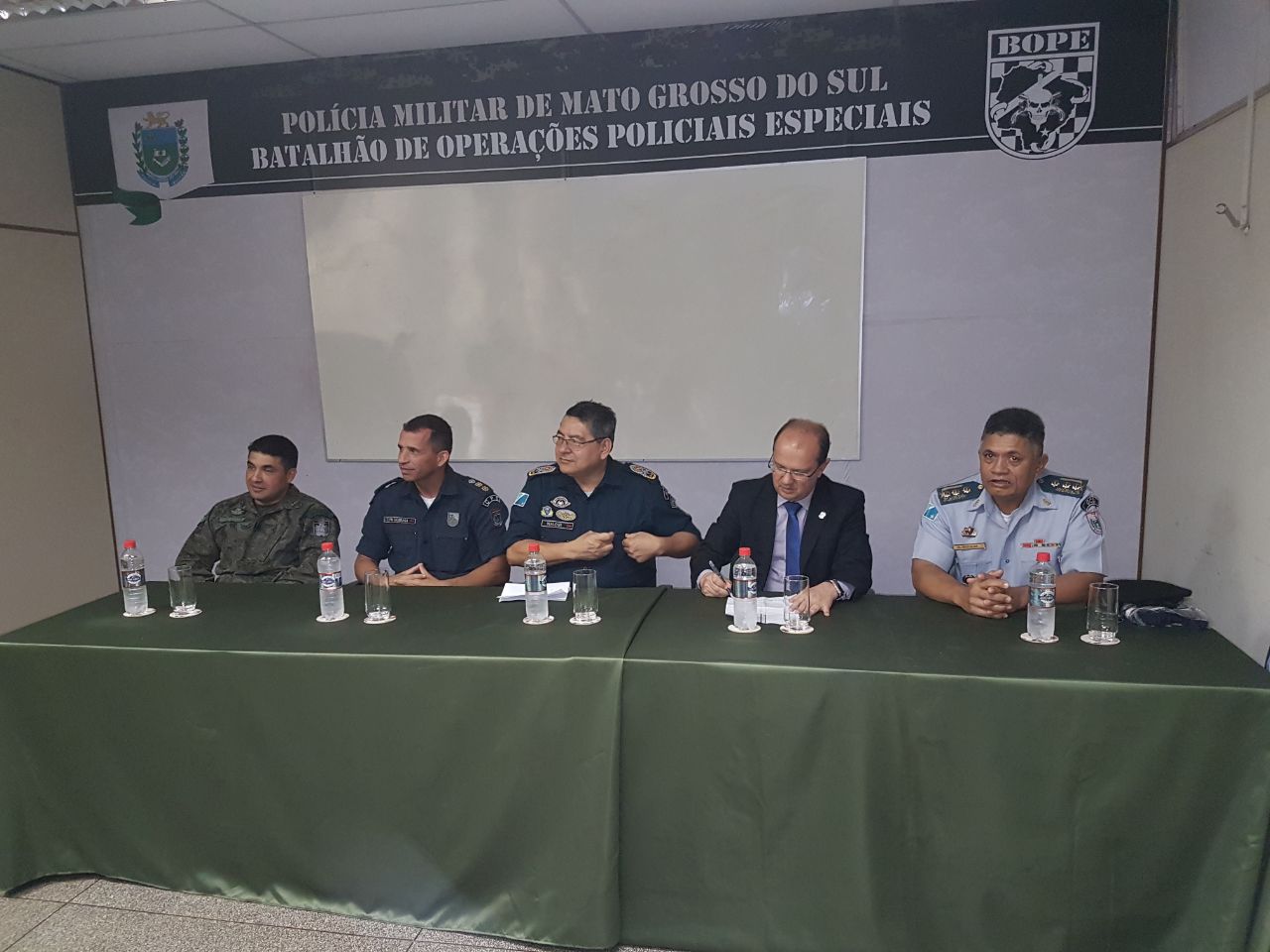 Participaram da solenidade de abertura o Secretário de Estado de Justiça e Segurança Pública, Dr José Carlos Barbosa, o Comandante Geral da PMMS – Coronel PM Waldir Ribeiro Acosta, o Subcomandante-Geral da PMMS – Coronel PM Valdecir Escalhar, o Diretor de Recrutamento, Seleção e Promoção – Coronel PM Edmilson Lopes Cunha, o Subcomandante do Comando de Policiamento Especializado – Tenente-Coronel PM Luís Antônio Sá Braga e o Comandante do BEPI/PMPE – Tenente-Coronel PM Jamerson Pereira de Lira.