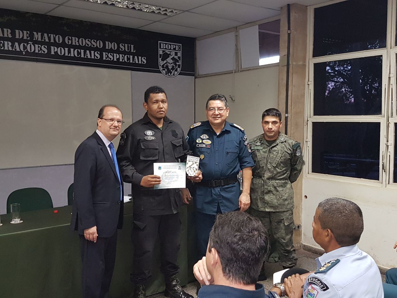 Campo Grande (MS) – A Polícia Militar de Mato Grosso do Sul por meio do BOPE – Batalhão de Operações Policiais Especiais, formou hoje (11/08) treze policiais militares para executar o rastreio de pessoas em mata e conduzir patrulhas, principalmente no enfretamento ao Novo Cangaço. Além de 10 (dez) policiais militares do BOPE de Mato Grosso do Sul o curso teve participação de policiais militares dos BOPEs da Polícia Militar do Amapá, da Bahia e de Mato Grosso.