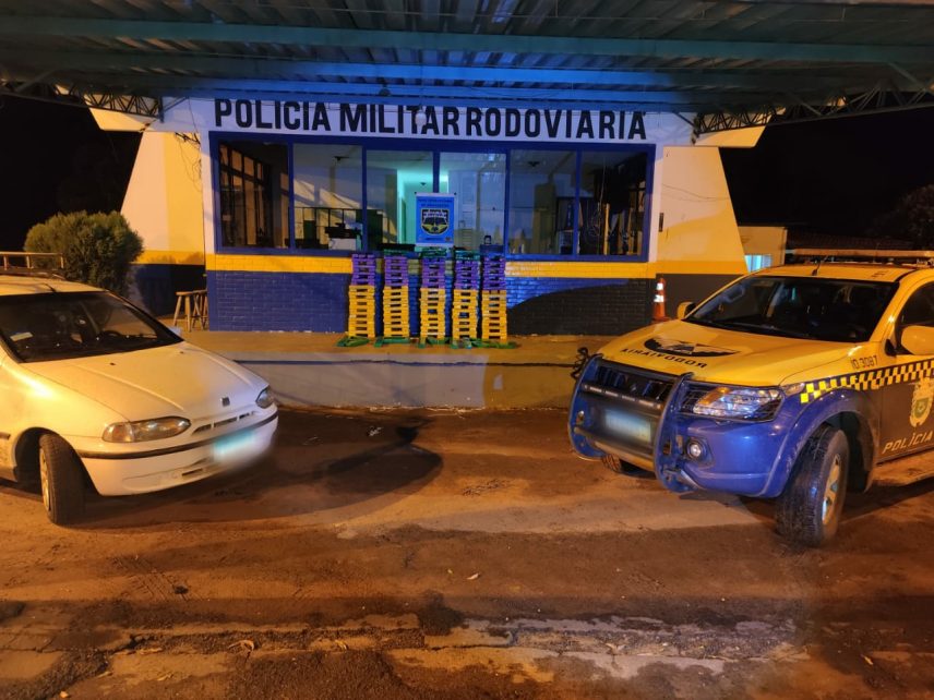 Os Policiais Militares realizavam fiscalização de trânsito na rodovia MS 156 quando ordem de parada ao veículo Fiat/Palio Weekend, placa de Sarandi/PR.