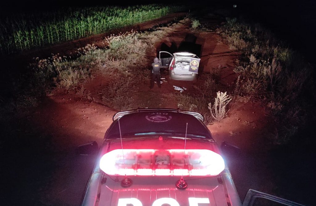 Os militares perceberam o momento em que o condutor do Fiesta, que seguia em direção à cidade de Maracaju, parou bruscamente, desligou os faróis e retornou em alta velocidade para a cidade de Ponta Porã. Após uns três quilômetros, os policiais localizaram o veículo avariado em uma ribanceira. Condutor e passageiro fugiram para uma plantação de milho e não foram localizados.