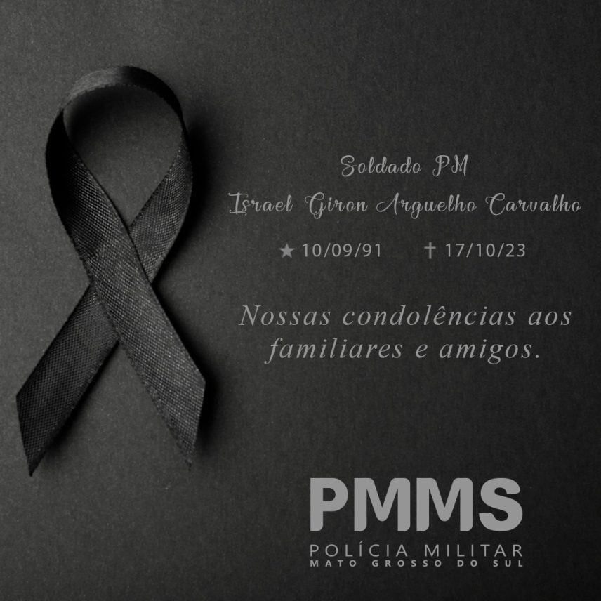 Os pensamentos da tropa estão com a família do Soldado PM Israel Giron Arguelho de Carvalho neste momento difícil. A PMMS externa condolências aos familiares, amigos, e colegas de farda, rogando a Deus que os conforte neste momento de dor.