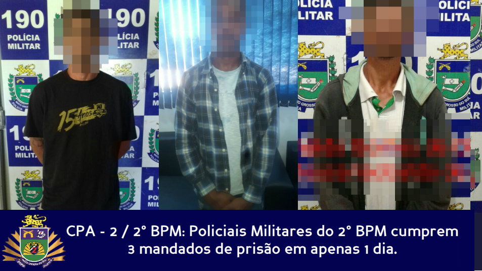 Três Lagoas (MS) – Ontem (19/06), policiais militares do 2° BPM cumpriram 3 (três) mandados de prisão em apenas um dia. O primeiro foi por volta das 9h30 quando policiais da ROTAI (Rondas Táticas do Interior), foram acionados via COPOM (Central de
