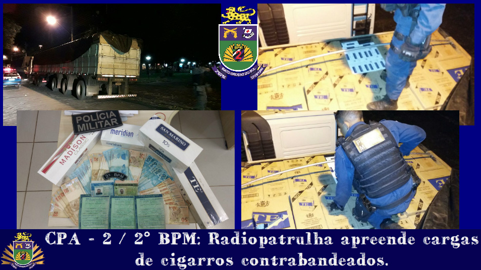 Três Lagoas (MS) – No dia (19/06) por volta das 20h10min, Policiais Militares da Radiopatrulha apreenderam duas cargas de cigarros contrabandeados em abordagem a veículos suspeitos. A guarnição estava em rondas quando se deparou com duas carretas que