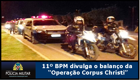 Campo Grande (MS) – A Polícia Militar Rodoviária apresenta o resultado da “Operação Corpus Christi”, ocorrido entre os dias 14 a 19 do mês de junho de 2017, referente ao policiamento rodoviário realizado através das dez Bases