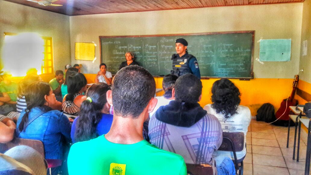 Bonito(MS) Na manhã dessa quarta-feira ( 14/07) os policiais da PM de Bonito realizaram uma palestra na escola BCG(Extensão Águas do Miranda). O Evento trata-se de uma parceria entre a Polícia Militar, as Diretoras da escola Maria Luiza e Rosemere