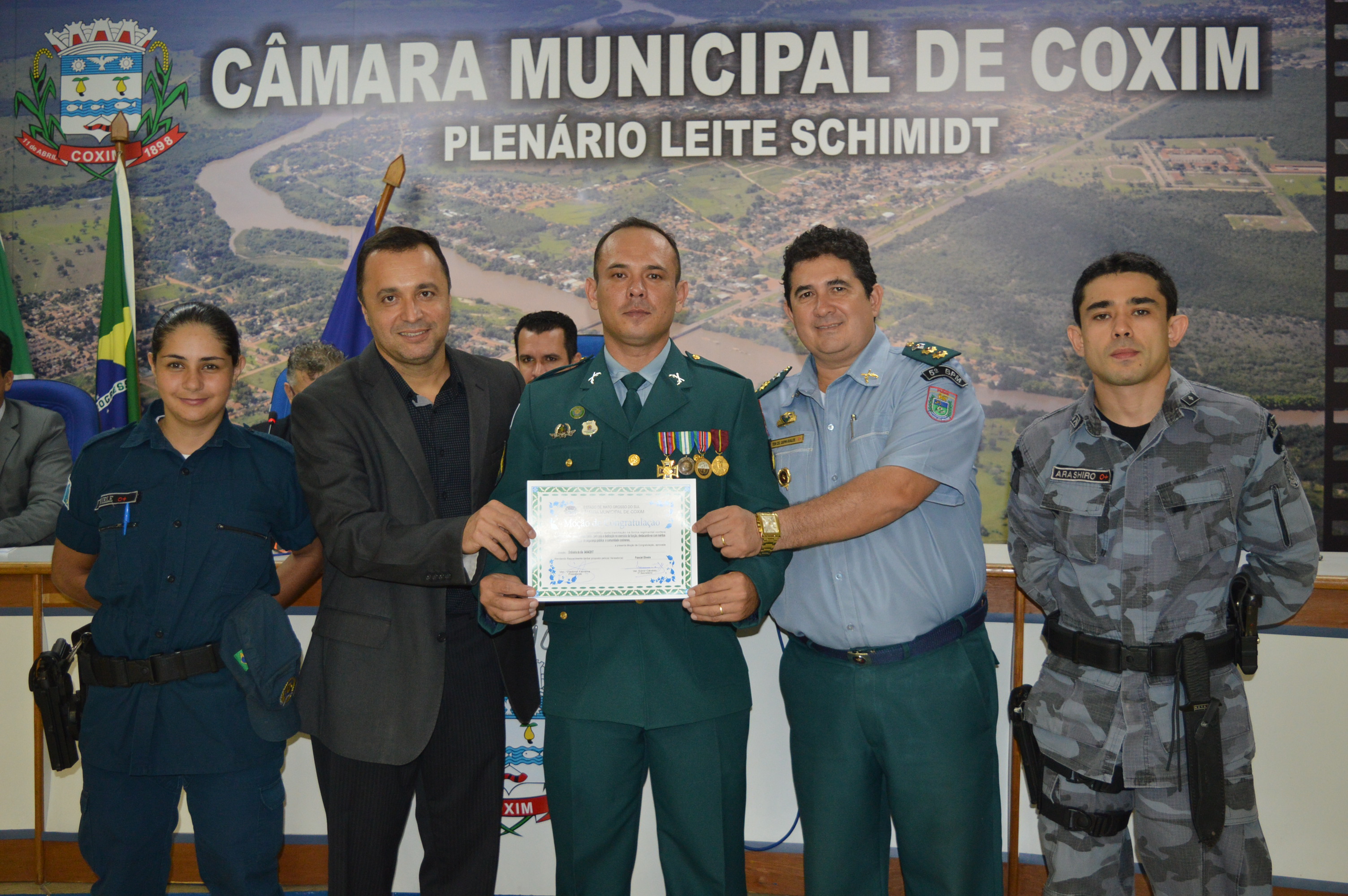 Coxim (MS) – O Comandante do 5º Batalhão de Policia Militar de Coxim na noite do último dia (06), participou da seção da câmara municipal de Coxim onde o Sargento PM Silvio Soares Pavão , recebeu a moção de congratulação proposta pelo