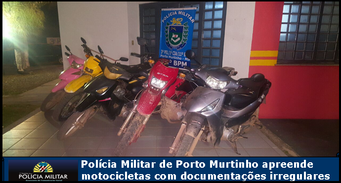 Jardim (MS) – Ontem (06), a Polícia Militar de Porto Murtinho realizou blitzes em vários pontos da cidade, onde apreendeu diversas motocicletas com documentações que não estavam devidamente regularizadas. Fiscalizações como essa serão rotinas na