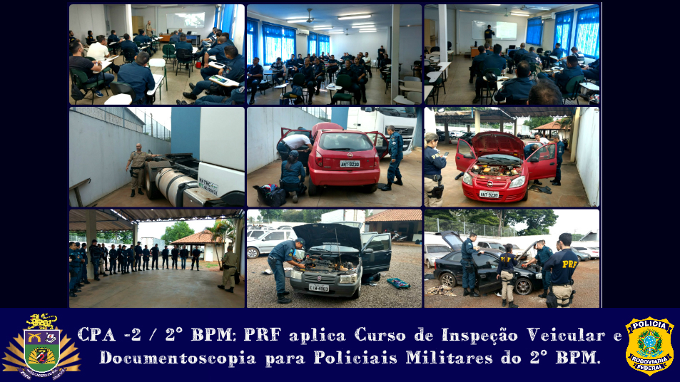 Três Lagoas (MS) – No período de 29/05 a 01/06, Policiais Rodoviários Federais ministram o Curso de Inspeção Veicular e Documentoscopia nas dependências do 2º Batalhão de Polícia Militar. Estão participando da instrução policiais militares do