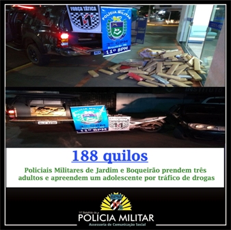 Jardim (MS) – Ontem (30), por volta das 16h, a guarnição da Polícia Militar do Distrito do Boqueirão em conjunto com a guarnição da Força Tática e Rádio Patrulha de Jardim, realizaram a apreensão de um menor e a prisão de três homens, pelo crime