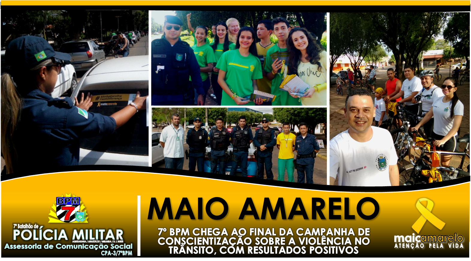 Campo Grande (MS) – O 17º Batalhão de Polícia Trânsito, juntamente com outros Órgãos integrantes do Gabinete de Gestão Integrada de Trânsito (GGIT), encerra o movimento do “Maio Amarelo” de 2017 nesta quarta-feira (31), na Avenida Afonso