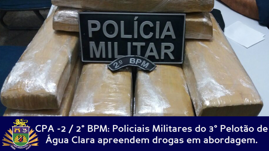 Água Clara (MS) – No dia (26/05) por volta das 10h20min, Policiais Militares do 3º Pelotão realizaram uma apreensão de entorpecente em abordagem a um veículo em atitude suspeita. A guarnição estava em rondas pela Avenida Julio Maia, quando avistaram
