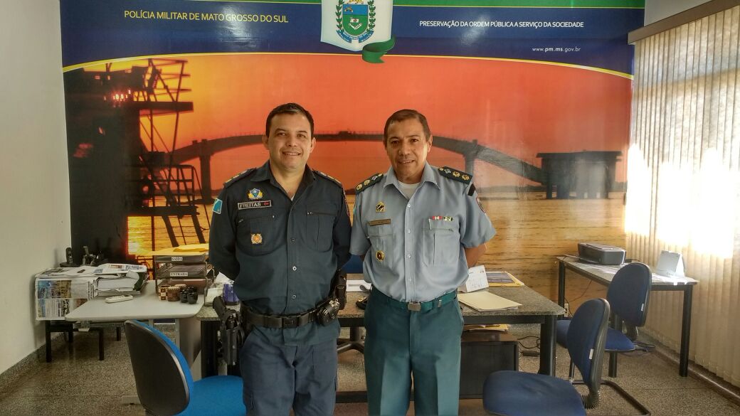 Corumbá (MS) – Na manhã de sexta-feira (26/05), o Comandante do 6º Batalhão de Polícia Militar, Ten. Cel. Freitas, recebeu a visita do Ten. Cel QOPM Márcio Filgueiras de Morares, Comandante do Policiamento da Área-3 da PMMS, responsável pela