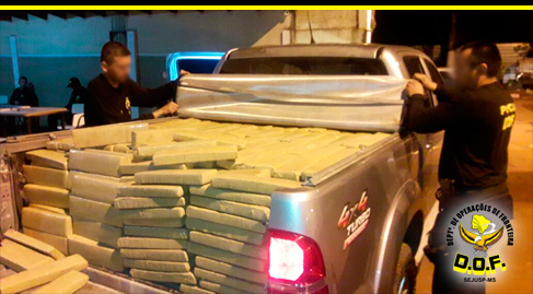 Laguna Carapã (MS) – Policiais do Departamento de Operações de Fronteira (DOF) prenderam dois homens transportando vários tabletes de uma substância esverdeada aparentando ser maconha, com peso total de 446 quilos em um veículo Siena vermelho com