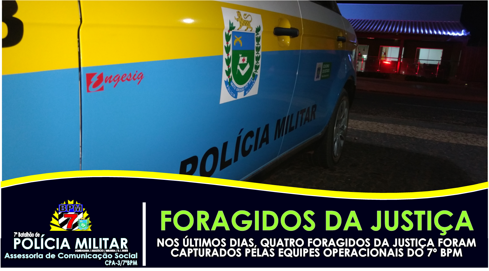 Aquidauana (MS) – Nos últimos dias, as Equipes Operacionais da área de atuação do 7º Batalhão de Polícia Militar, tiraram de circulação diversos indivíduos nocivos ao convívio social, graças as ações desencadeadas e dos atendimentos feitos em