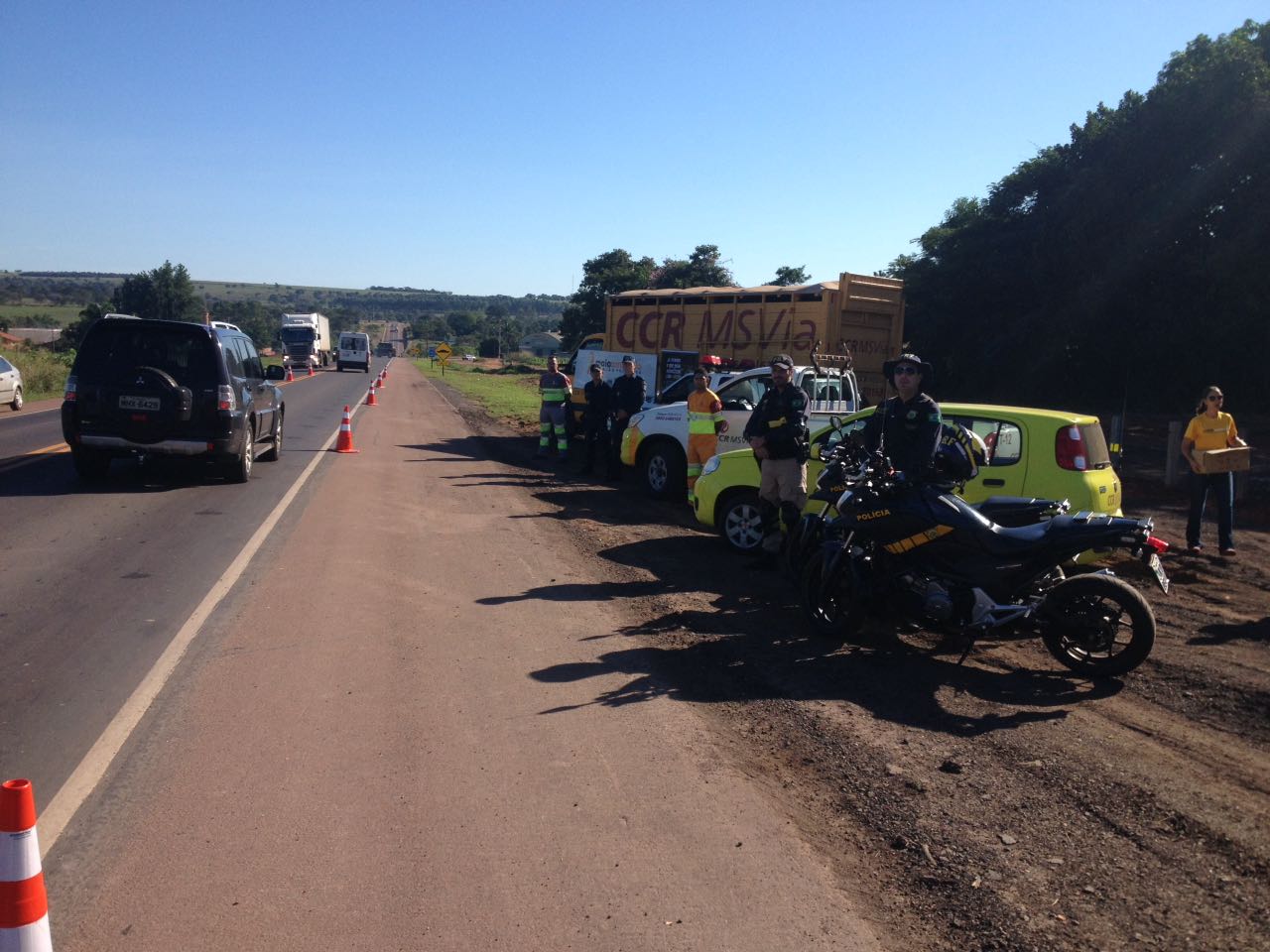 Coxim (MS) – Polícia Militar juntamente com a Polícia Rodoviária Federal, Detran (Departamento Estadual de Trânsito) de Rio Verde MT/MS realizaram ontem (25), a programação do Maio Amarelo. Foi realizado blitz educativa e conscientização a