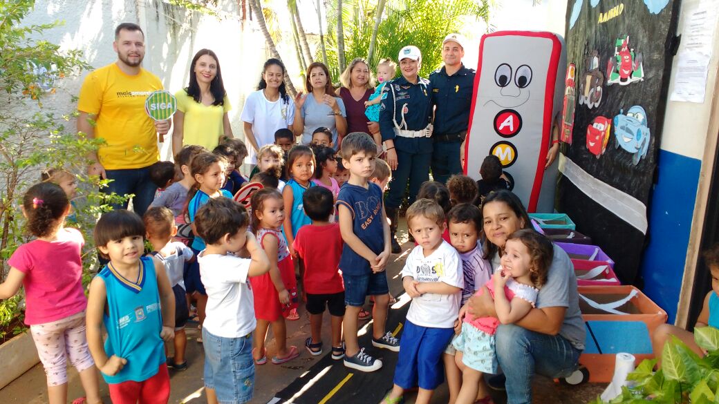 Campo Grande (MS) – Nessa quinta-feira (25), Policiais Militares do 17º Batalhão de Polícia Trânsito ministraram palestras sobre o trânsito para crianças do Centro de Educação Infantil Marcos Roberto. O evento atingiu 35 crianças de 1 a 5 anos, as