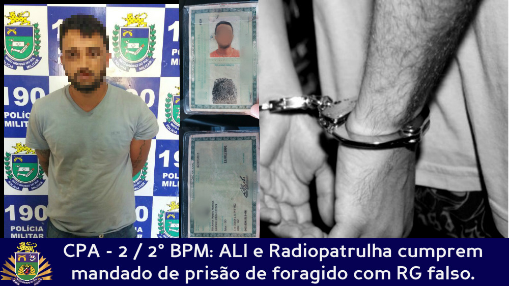 Três Lagoas (MS) – No dia (25/05) por volta das 12h00min, policiais militares da Agência Local de Inteligência e Radiopatrulha cumpriram um mandado de prisão após identificar foragido com documentação falsificada. A equipe da ALI (Agência Local de