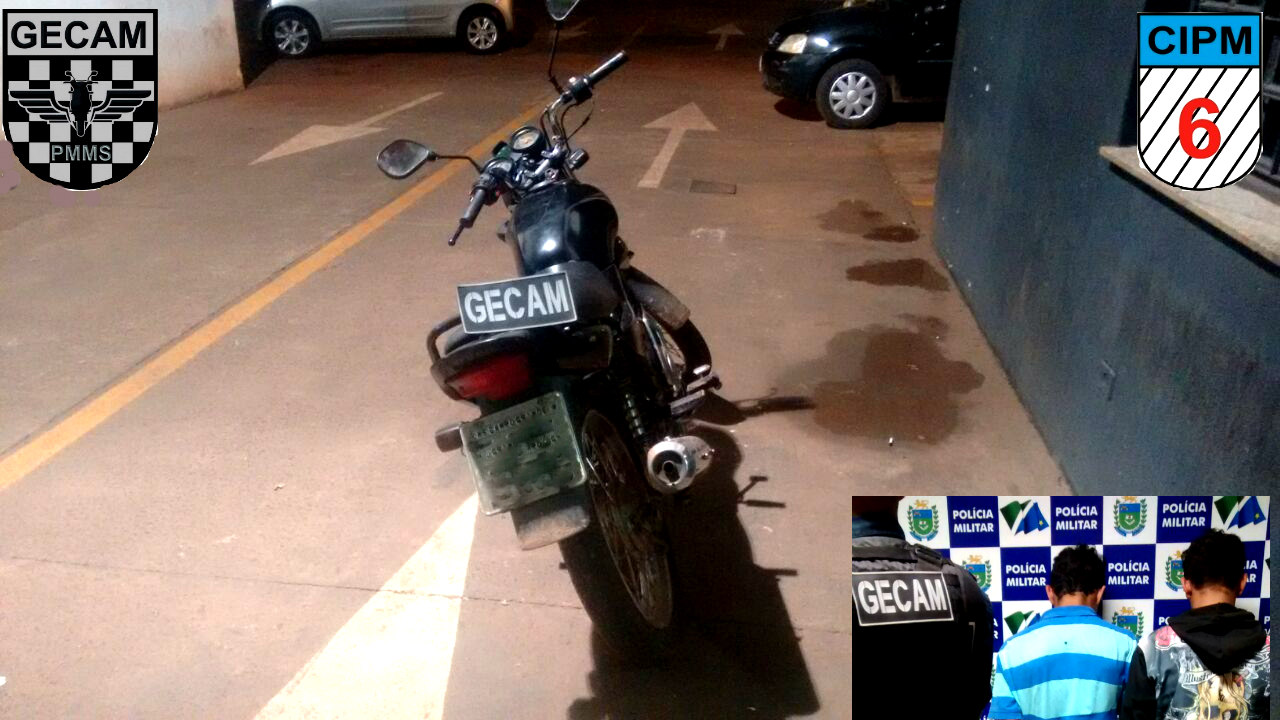 Campo Grande (MS) – Na noite desta quinta-feira, 25/05 por volta das 21h065min, policiais militares recuperaram uma motocicleta furtada. A equipe GECAM durantes rondas no Jd. Itamaracá, se deparou com dois jovens em uma motocicleta. Realizada a abordagem,
