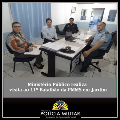 Jardim (MS) – Ontem (23), o Major Adriano Rodrigues de Oliveira, Subcomandante do 11º BPM, recebeu em seu gabinete a visita do Ministério Público de Jardim, na pessoa do Promotor Allan Carlos Cobacho do Prado. Esta visita vem atender o que versa o artigo
