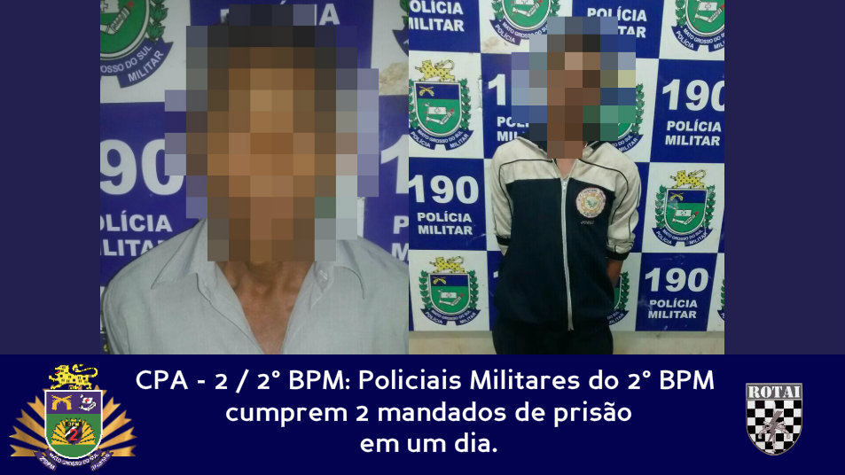 Três Lagoas (MS) – Ontem (22/05), policiais militares do 2° BPM cumpriram 2 (dois) mandados de prisão. O primeiro foi por volta das 18h05 quando uma guarnição da ROTAI (Rondas Táticas do Interior) foi acionada pela Agência Local de Inteligência