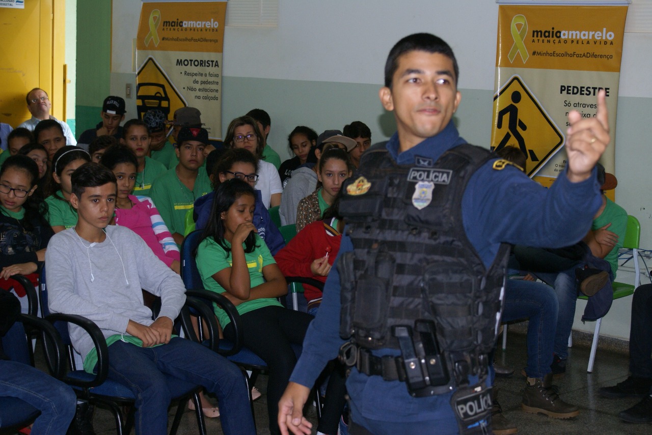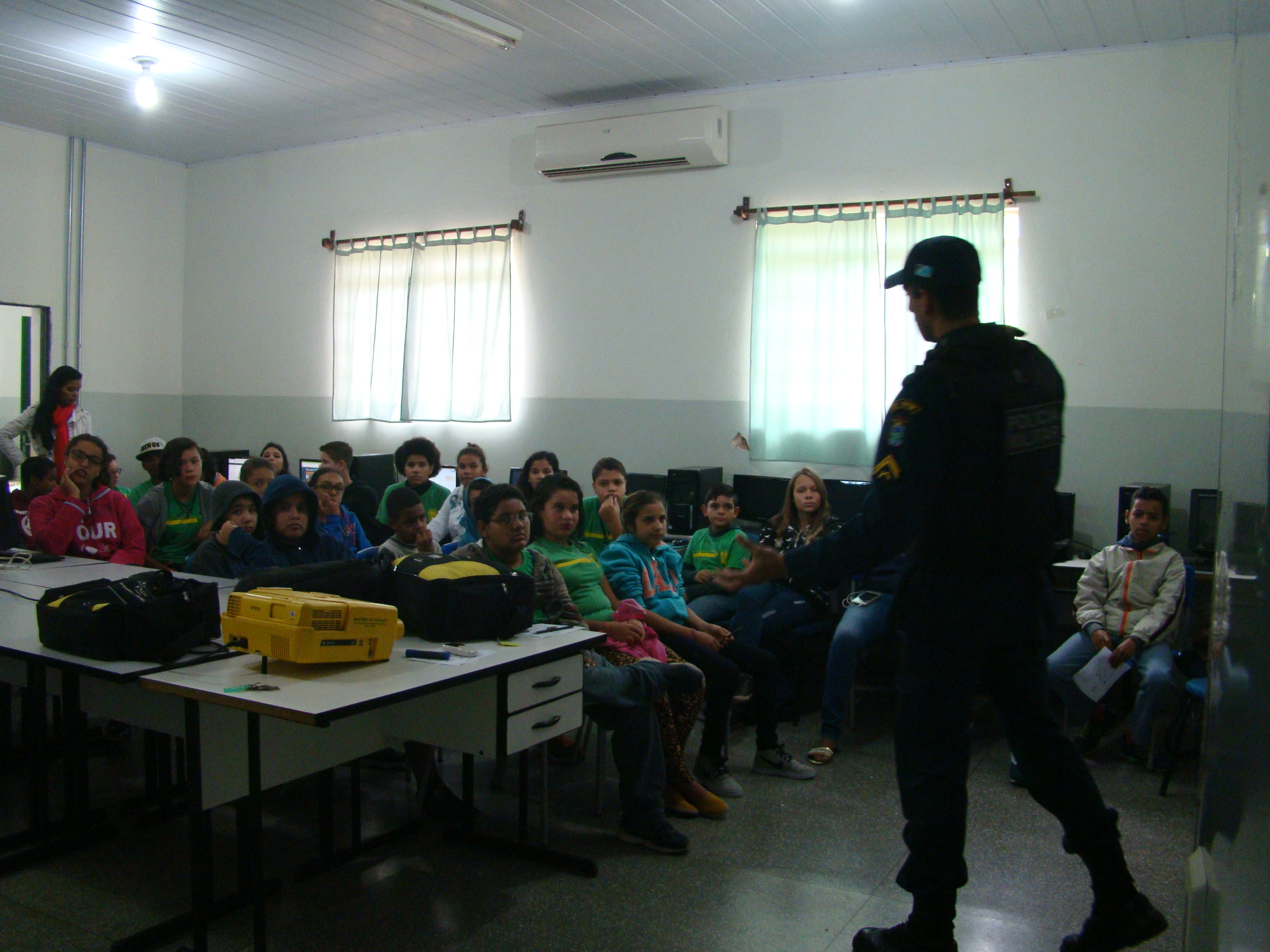 Nova Andradina (MS) A Polícia Militar de Nova Andradina, por meio do Policiamento Comunitário que tem como Comandante o Aspirante-à-Oficial Freitas, participou nesta segunda (22) de atividades na Escola Estadual Irman Ribeiro. O Cabo Jean ministrou
