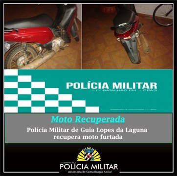 Jardim (MS) – Ontem (22), por volta das 14h, os policiais militares de Guia Lopes da Laguna recuperaram um motocicleta Honda/Biz, de cor vermelha, e apreendem dois adolescentes, de 14 e 16 anos, e um prende um homem de 18 anos. A guarnição policial