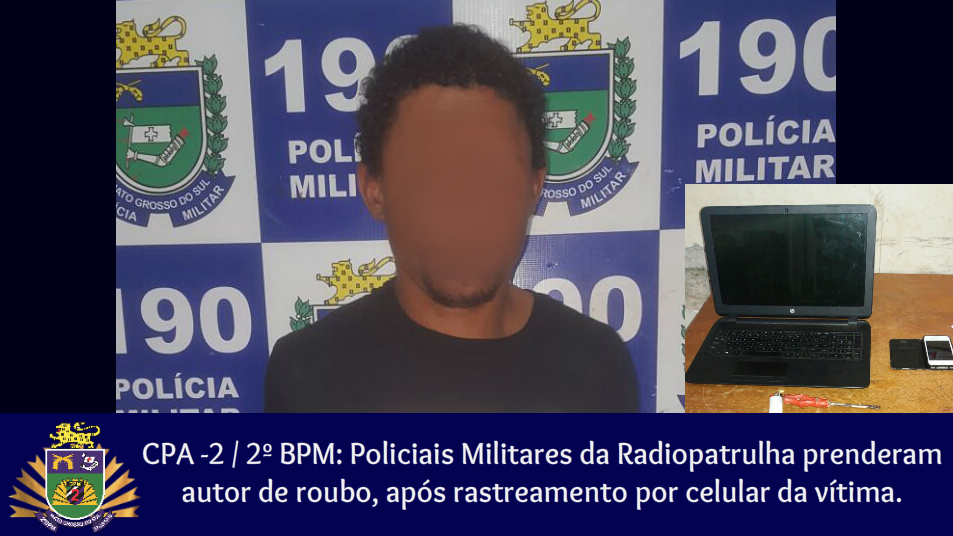 Três Lagoas (MS) – No dia (22/05) por volta das 05h45min, policiais militares da Radiopatrulha prenderam o autor de um roubo após rastreio do telefone celular subtraído. A guarnição foi acionada via COPOM (Central de Operações da Polícia Militar) a