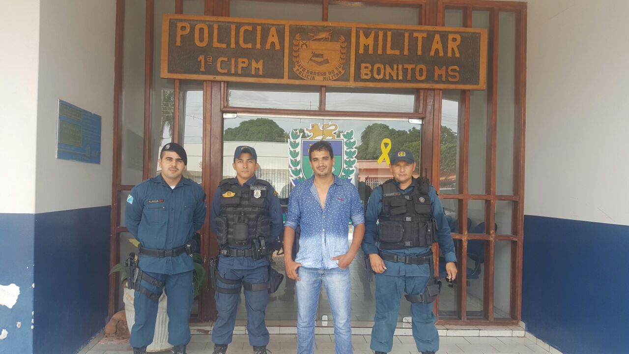 Na manhã desta segunda-feira (22) recebemos a visita do Sr. Tiago Almeida no quartel da Policia Militar de Bonito, pois o mesmo teve seu veículo furto na cidade de Jataí-GO, onde foi recuperada por uma guarnição de serviço de nossa unidade, na