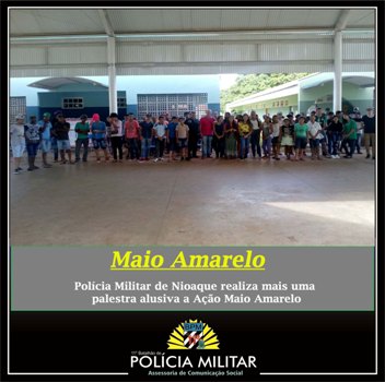 Jardim (MS) – A Polícia Militar e o Departamento Municipal de Trânsito de Nioaque, realizaram nos dias 17 e 18 de Maio ações preventivas da Campanha Maio Amarelo, no dia 17 foram atendidos os alunos do 5° Ano ‘B’ da Escola Municipal