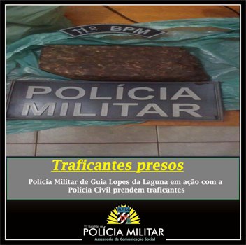 Jardim (MS) – Ontem (18), por volta das 12h, a guarnição da Polícia Militar de Guia Lopes da Laguna, juntamente com a Polícia Civil, fizeram a prisão de um homem de 24 anos e de um adolescente de 17 anos, pelo crime de tráfico de drogas. Os policiais,