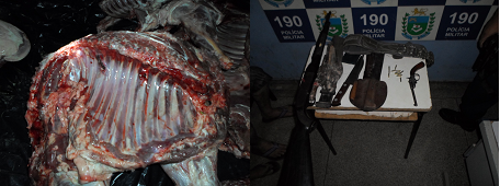 Campo Grande (MS) – Policiais Militares Ambientais de Aquidauana foram acionados por Policiais Militares do 7º Batalhão ontem (11) às 21h00, em razão da prisão de quatro caçadores, que retornava de uma caçada ilegal, na qual abateram quatro