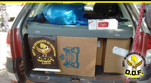 Aral Moreira (MS) – Policiais do Departamento de Operações de Fronteira (DOF) apreenderam, na manhã de quarta-feira (10), por volta das 10h50, um veículo Fiat Palio Weekend de cor prata, placas de Caarapó, MS com 450 pacotes de cigarros de origem