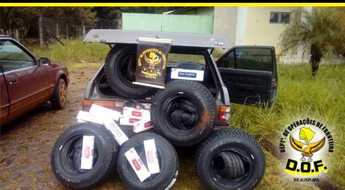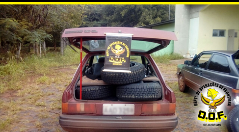 Mundo Novo (MS) – Policiais do Departamento de Operações de Fronteira (DOF) apreenderam, na manhã de quarta-feira (10), por volta das 11h50, um veículo VW Gol com placas de Umuarama, PR transportando 24 pneus de várias marcas e origem estrangeira, sem