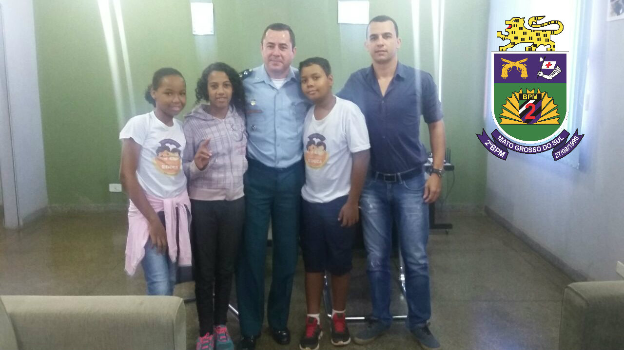 Três Lagoas (MS) – Na manhã de ontem (10/05) por volta das 9h30min o Comandante do 2° BPM recebeu a visita de três alunos do Programa Social Educa juntamente com o coordenador do projeto o Sr. Luan Freitas. O Educa é um programa realizado na escola