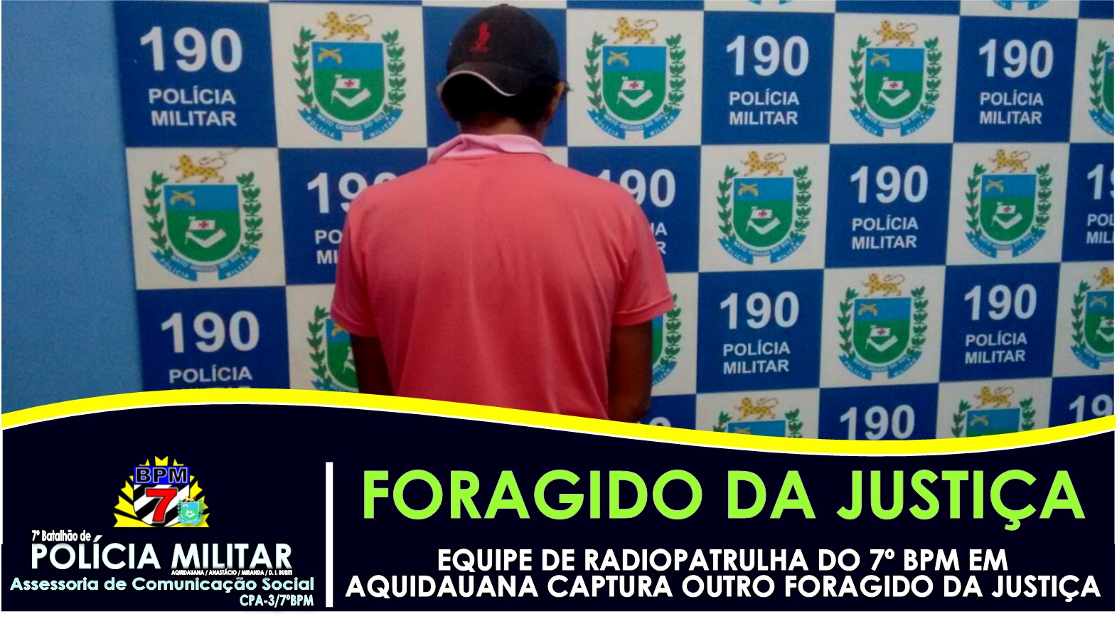 Aquidauana (MS) – Ontem (09.05), por volta das 15 horas, a equipe de Radiopatrulha do 7º Batalhão PM recebeu da Central de Operações 190, a informação de que um indivíduo, procurado pela justiça, estaria nas proximidades da Rua Bichara Salamene,