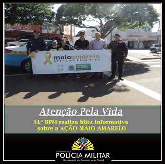 Jardim (MS) – Aconteceu hoje pela manhã (08/05), uma blitz informativa no centro da cidade de Jardim, para a divulgação da Ação Maio Amarelo. A Ação visa informar e conscientizar os condutores de veículos automotores quanto à segurança no uso das
