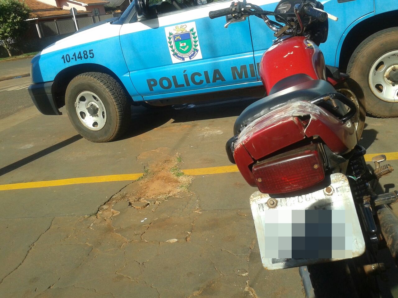 Nova Andradina (MS) – A Polícia Militar de Anaurilândia apreendeu neste domingo (07) uma motocicleta com sinal identificador violado, quando em patrulhamento, a equipe de rádio patrulha avistou uma motocicleta Honda/CG 125 com o condutor em atitude