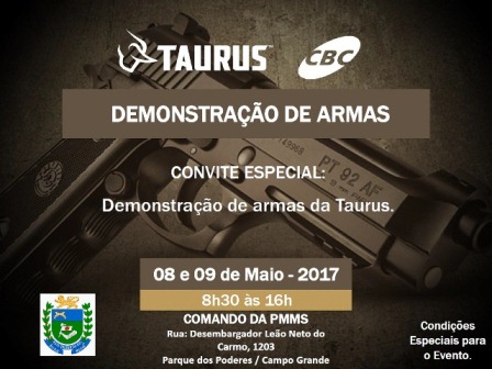 Campo Grande (MS) – A Polícia Militar do Estado de Mato Grosso do Sul, em parceria com a empresa Taurus especializada em armas de fogo, sedia nos dias 8 e 9 de maio, no Comando Geral da PMMS, das 8h30 às 16h, uma exposição para demonstração