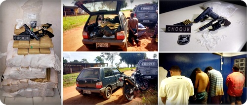 Três Lagoas (MS) – Na tarde de ontem (02/05), por volta das 14h40min, Policiais Militares da Patrulha Rural do 2°BPM em ação conjunta com a PRF (Polícia Rodoviária Federal) prenderam sete pessoas transportando 1609 kg de drogas. A operação contou