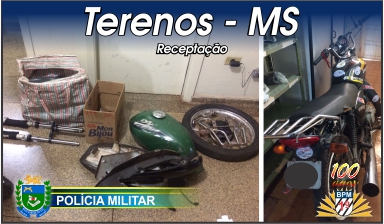 Campo Grande (MS) Neste sábado (29), por volta das 16:10h no município de Terenos – MS, a Base Comunitária de Segurança, recuperou uma motocicleta furtada, um (01) quadro com motor e várias outras peças de motocicletas dentro de uma residência. Os