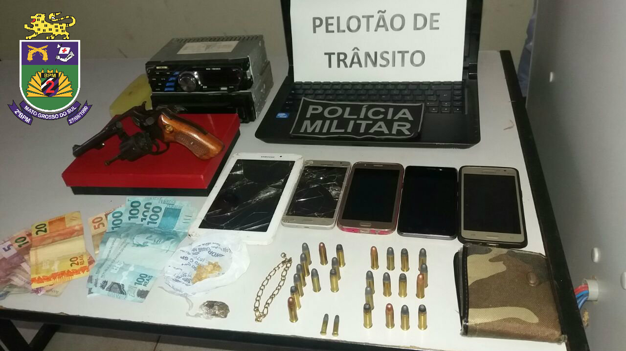 Três Lagoas (MS) – Na tarde de ontem (27/04), por volta das 15h00min, Policiais Militares do 2°BPM apreenderam uma arma de fogo, munições, vários celulares, um tablet, um notebook, um aparelho de som e seis gramas de entorpecentes. Após varias