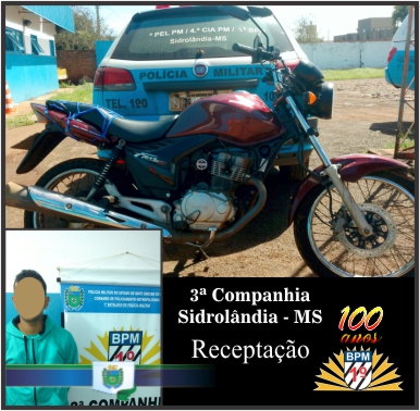 Campo Grande (MS), nesta quinta-feira, por volta das 11:40h, a 3ª companhia de Polícia Militar recuperou (01) uma motocicleta roubada e prendeu condutor por receptação em Sidrolândia – MS. A equipe policial efetuava rondas ostensivas pela principal