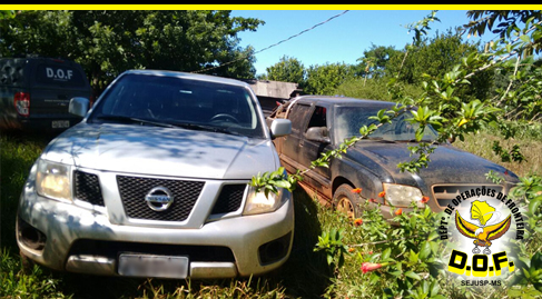 Itaquiraí (MS) – Policiais do Departamento de Operações de Fronteira (DOF) apreenderam, na manhã desta quinta-feira (27), por volta das 6h, uma camionete Nissan/Frontier de cor prata de placas de Curitiba, PR e uma camionete GM/S10 Executive de cor