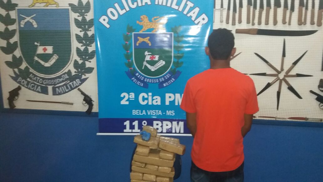 Dourados (MS) – O Departamento de Operações de Fronteira (DOF) prendeu, na tarde de segunda-feira (24), por volta das 17h30, um homem de 18 anos de idade transportando 19 tabletes de uma substância aparentando ser maconha, com peso total de 19 quilos. A