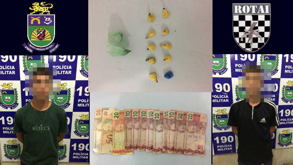 Três Lagoas (MS) – Nesta madrugada (20/04), por volta das 2h00min, Policiais Militares da ROTAI (Rondas Táticas do Interior), apreenderam dois adolescentes de 16 anos por ato infracional (Tráfico de Drogas). A guarnição estava em rondas pelo Bairro