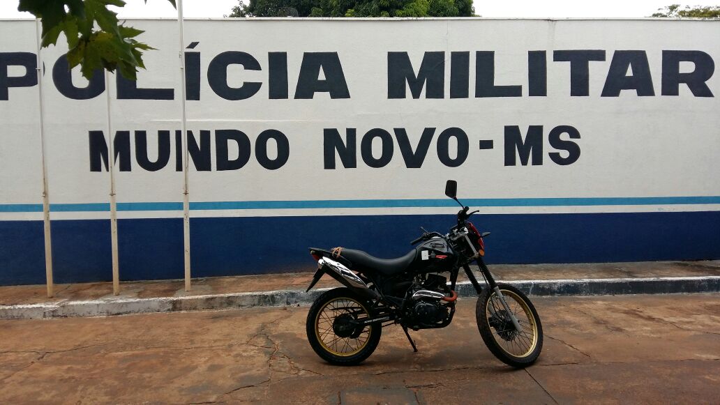 Mundo Novo (MS)- Uma motocicleta ano e modelo 2014, de origem estrangeira, que havia sido furtada da casa de seu proprietário, na madrugada de domingo(16), da casa de seu proprietário, localizada no Bairro Berneck em Mundo Novo, foi recuperado no final da