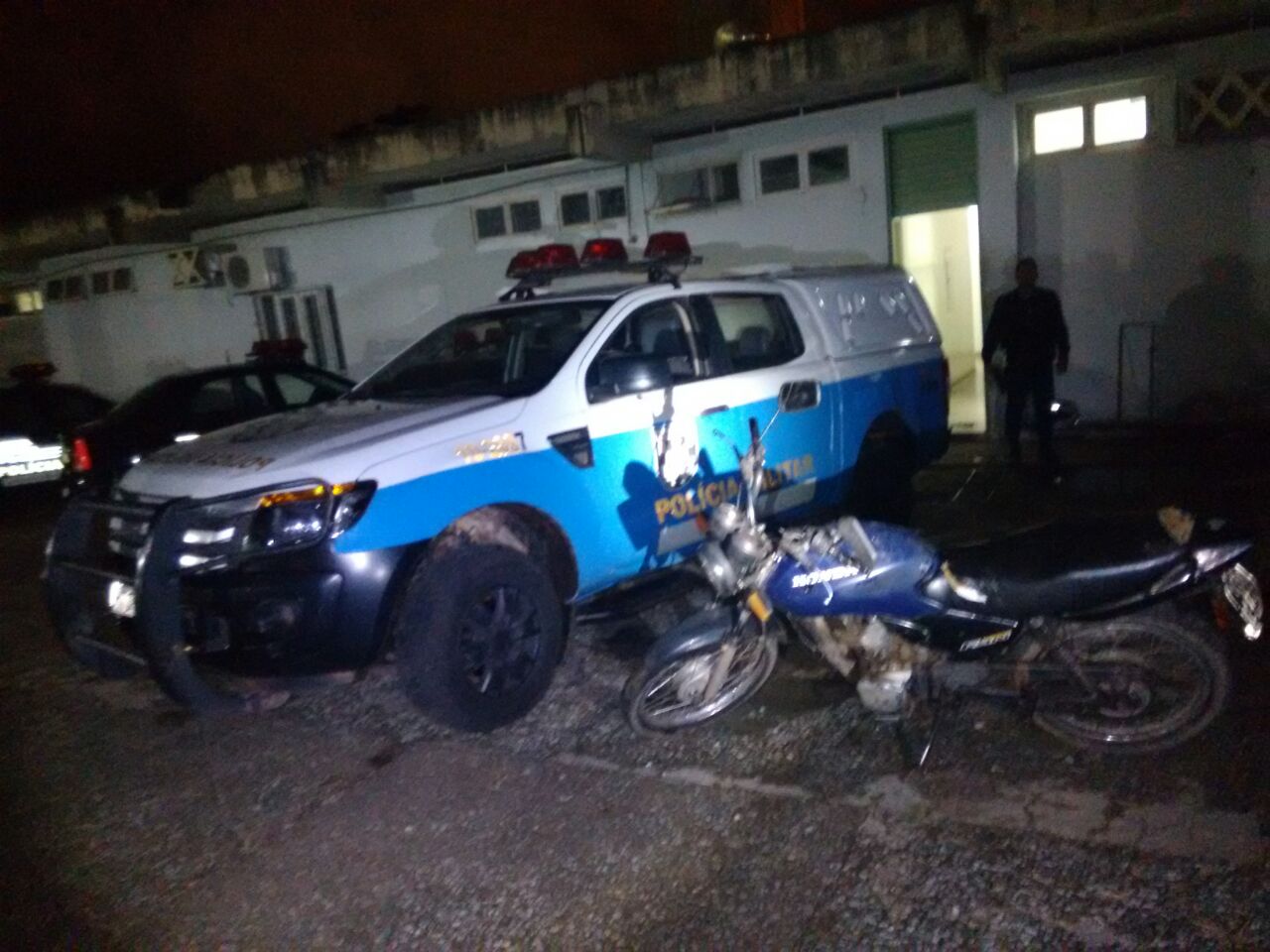Corumbá (MS) – Neste domingo (16/04), as 21h à equipe da Força Tática da Polícia Militar realizava diligências no bairro Vila Mamona na rua Comandante Wanderley apos informações via 190 de que haveria uma motocicleta abandonada no local. A equipe