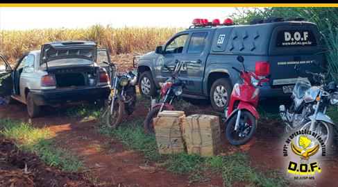 Iguatemi (MS) – Policiais do Departamento de Operações de Fronteira (DOF) prenderam na rodovia MS 295, na madrugada deste sábado (15) por volta das 0h15, dois homens transportando drogas em um veículo com placas de Pato Branco, PR. A ação policial